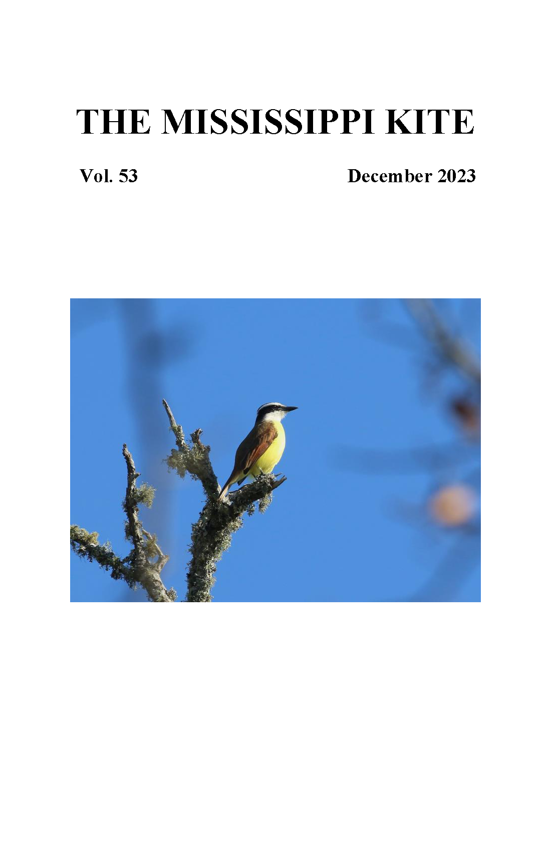 The Mississippi Kite is the journal of the Mississippi Ornithological Society, publishing articles that advance the study of birds in Mississippi. Possible topics for articles to be submitted to the journal include descriptions of species occurrence and distribution, unusual bird observations or behaviors, notes on the identification of Mississippi birds, and scientific studies from all fields of ornithology.